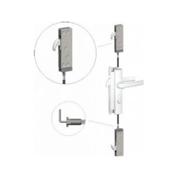 This cable-driven kit is used with Ultimate locksets to provide the extra security of three-point locking for hinged security doors.
