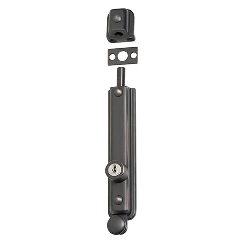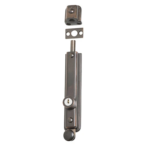 Key operated zinc alloy surface mounted bolt. Available in 9 finishes.