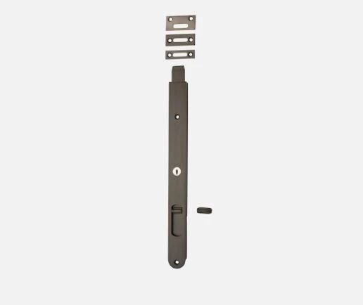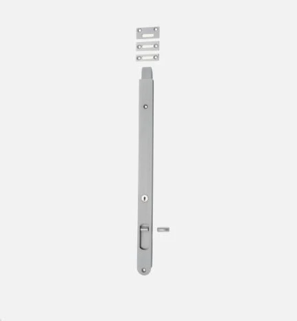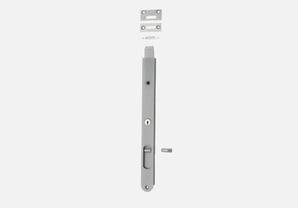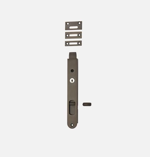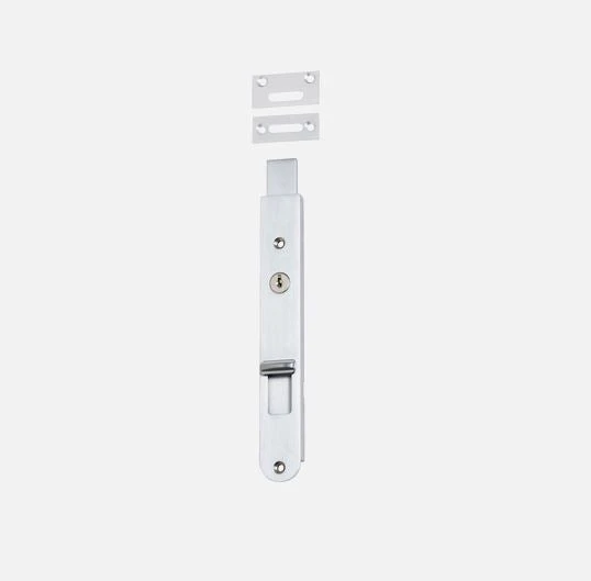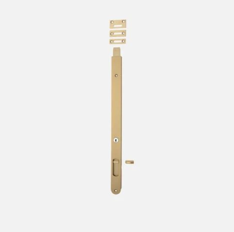 Key operated solid brass locking flush bolt. This product sits flush within a door for a clean, modern look. Bolts can be keyed alike.