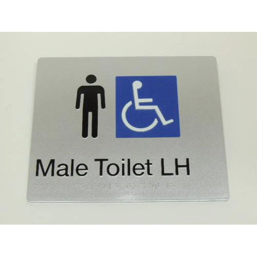 - Signage for unisex accessible facilities shall be provided with the letters LH or RH to indicate a left-hand or right-hand side transfer onto the WC pan. The min font size shall be 20 mm san serif
