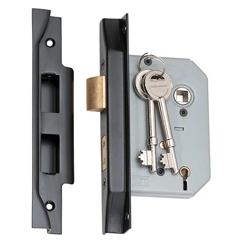 High Security. Solid brass face and striker plates. Available in 10 finishes. Reinforced steel pins. Anti pick curtain. Reversible tongues. 13mm rebate. Keyed alike or random keyed. Tested over 130,000 cycles. 46mm and 57mm backsets. Fitting instructions supplied.
