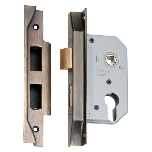 High Security. Solid brass face and striker plates. Available in 10 finishes. Reinforced steel pins. Reversible tongues. 13mm rebate. Tested over 130,000 cycles. 46mm and 57mm backsets. Fitting instructions supplied.